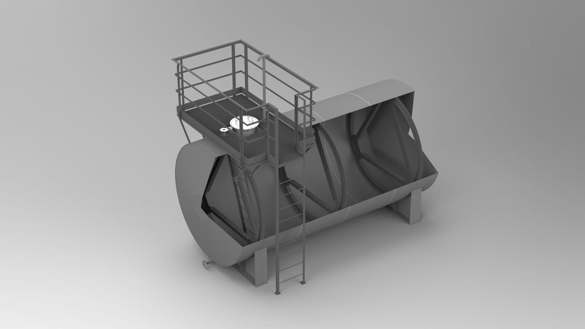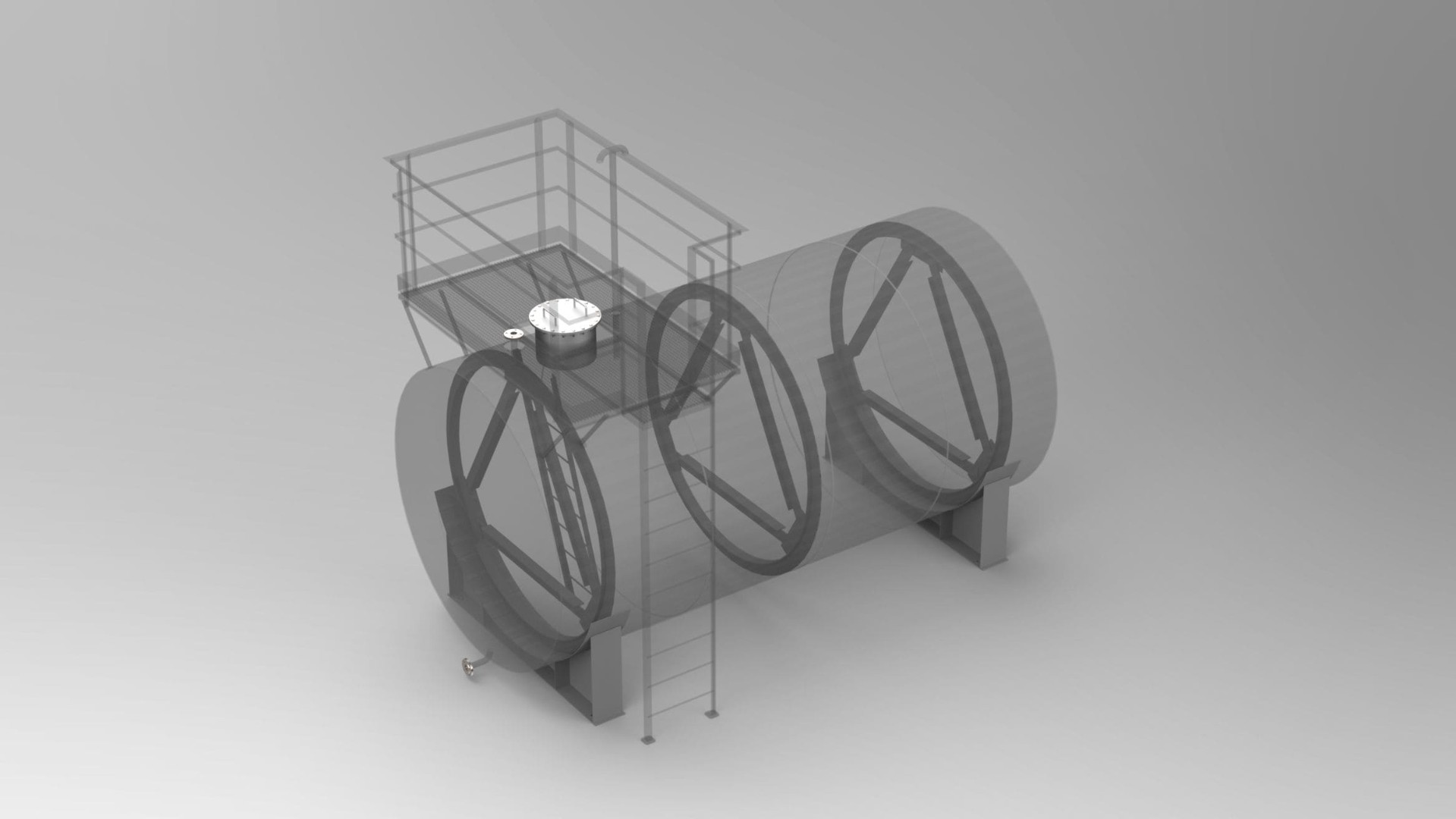 Внутренняя конструкция резервуара дополнительно укрепляется ребрами жесткости, выполненными из стального уголка, что придает дополнительную прочность всей структуре.